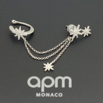 【周冬雨 宋茜同款】APM Monaco/APM Monaco单只六芒星流星链条流苏耳钉女耳夹 ins风气质时尚耳环耳坠 11547 送女友情侣闺蜜礼物银首饰品
