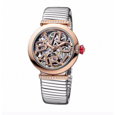 BVLGARI/宝格丽 LVCEA系列 女士镂空BVLGARI徽标圆形切割钻石装饰表盘不锈钢表带机械表腕表手表女表103093