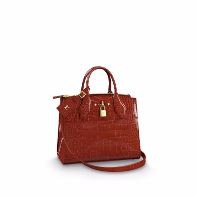 26.5 x 23.0 x 13.0 cm(长x高x宽) 鳄鱼皮 鳄鱼皮饰边 山羊皮衬里 银色金属饰面 带Dora支架的两个Toron手柄 可拆卸皮革包肩带 大隔间,背面有拉链 扁平前袋,四分之一圈和挂锁扣环 内部挂钩,以保护个人物品 地址持有人带有金属LV签名 签名LV Circle烫印在包的正面 也可应要求提供Niloticus鳄鱼皮