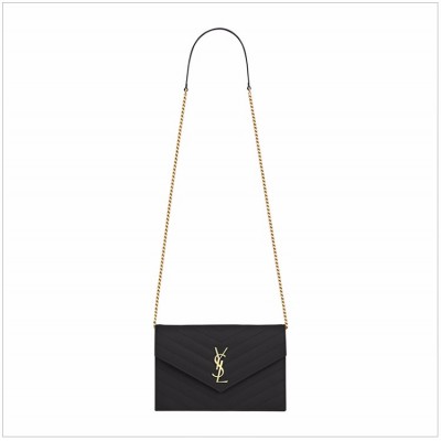 首页 > 包 > 女士包袋 > 【包邮包税】 SAINT LAURENT PARIS YSL 圣罗兰Monogram 景甜同款 女士黑色金logo牛皮经典前盖斜挎包单肩包链条包信封包女包 393953-BOW01-1000