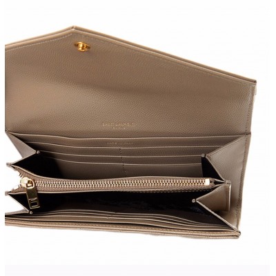 【包邮包税】 SAINT LAURENT PARIS YSL 圣罗兰 信封手拿包钱包女包 经典金属 logo 灰色牛皮 372264-BOW01-1722