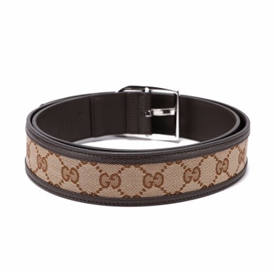 GUCCI/古驰 男士腰带经典 LOGO 压纹 银色针扣 棕色 皮质4cm宽 有细微划痕 防尘袋或品牌礼盒随机配发