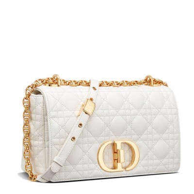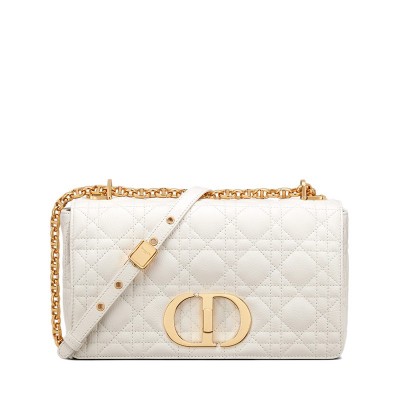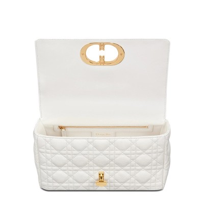 DIOR/迪奥 2021秋冬新款 CARO系列 女士中号象牙色柔软小牛皮藤格纹CD扭纹扣翻盖封口单肩斜挎包M9242UWHC_M35U