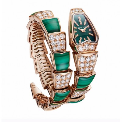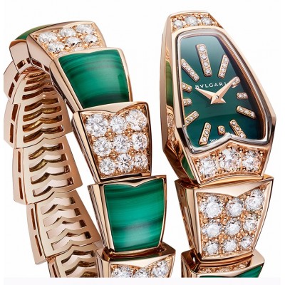 BVLGARI/宝格丽 Serpenti系列 女士蛇形玫瑰金明亮式切割钻石镶饰表壳孔雀石镶饰表带手表女表 102678